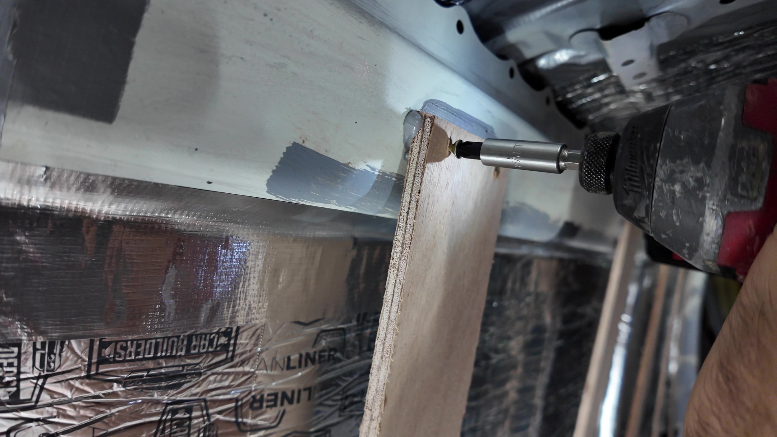 Before securing each strip, apply a bead of Sikaflex (or similar polyurethane adhesive) anywhere timber will contact metal. This adds strength, reduces vibration, and helps prevent squeaks later. (Don’t skip this step)