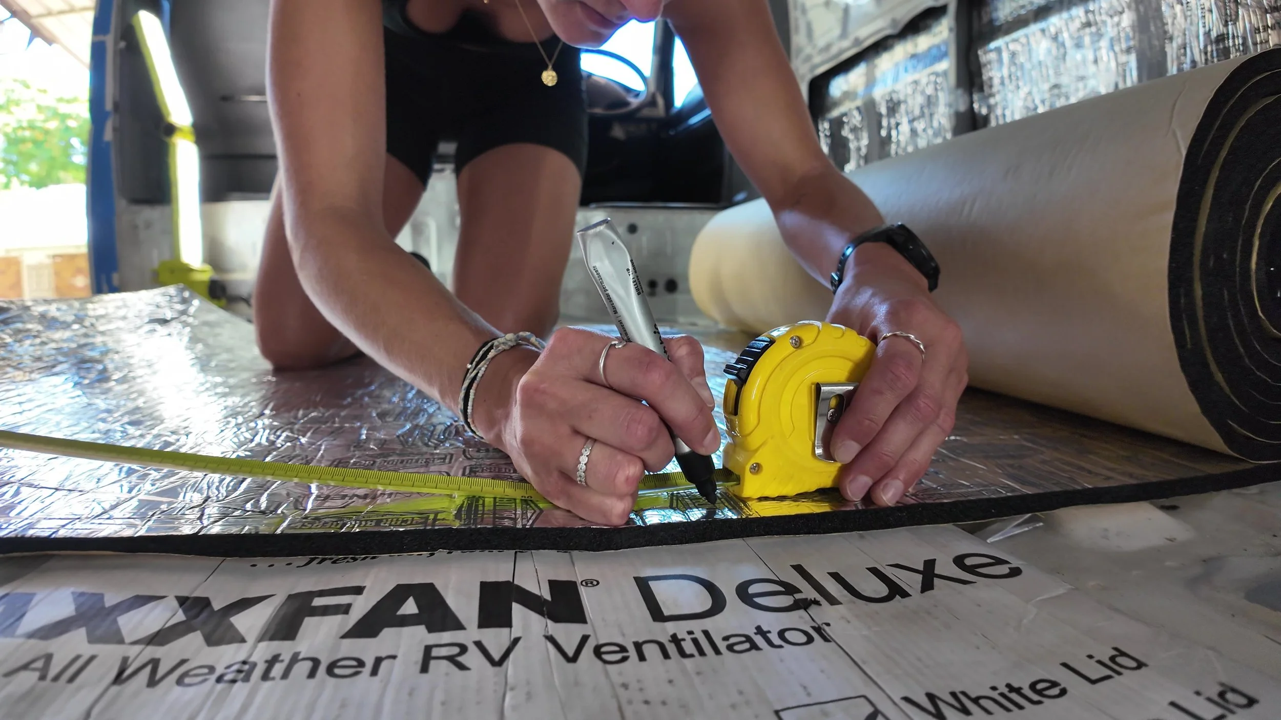 Closed-cell foam sticks directly to the van’s walls, blocking moist air from contacting cold metal.